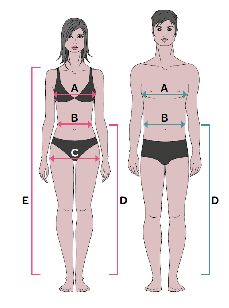 Tour de poitrine (A), mesurez à l'endroit le plus fort