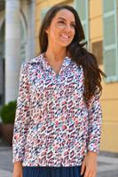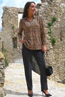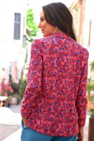 Chemisier conçu pour les femmes âgées élégante. Composé de différents imprimés fantaisies ce haut présente raffiné apporte une note de fraîcheur à votre garde robe. Adapté et facile à enfiler il propose une option à la mode qui allie harmonieusement modernité esthétique et confort pour les dames qui résident en EHPAD.